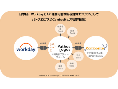 株式会社パトスロゴス(本社:東京都品川区、代表取締役CEO:牧野 正幸、以下「当社」)は、Workdayの「Workday ヒューマン キャピタル マネジメント(Workday HCM)」と当社の大企業向け人事・給与計算SaaS「Combosite人事給与」をAPI(※1)連携させる機能をリリースしたことをお知らせします。APIを用いてWorkday HCMと双方向の人事給与データ連携を実現したサービスは、日本初(※2)です。