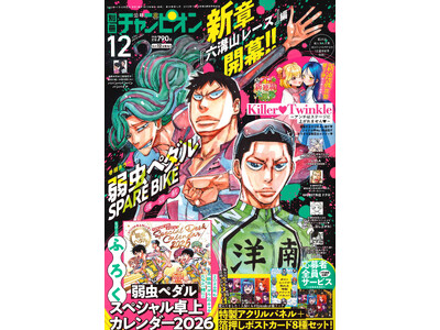 株式会社秋田書店(所在地:東京都文京区、代表取締役社長:山口徳二)は、発行している漫画誌「別冊少年チャンピオン」(編集長:小口太郎)11月12日(水)発売の12月号にて、表紙&巻頭カラーに『弱虫ペダル SPARE BIKE』(著:渡辺航)を掲載。付録では、『弱虫ペダル』スペシャル卓上カレンダー2026が登場することをお知らせいたします。