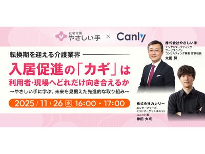 Googleビジネスプロフィール(旧・Googleマイビジネス)、Yahoo!プレイス、Appleマップなどの3大地図媒体、HP、アプリ、SNSなどの店舗集客媒体の一元管理サービス「カンリー店舗集客」の開発・提供を行う株式会社カンリー(所在地:東京都品川区、代表取締役:辰巳 衛,秋山 祐太朗)は2025年11月26日(水)16時より介護業界向けセミナー【転換期を迎える介護業界、入居促進のカギは「利用者・現場へどれだけ向き合えるか」~やさしい手に学ぶ、未来を見据えた先進的な取り組み~】