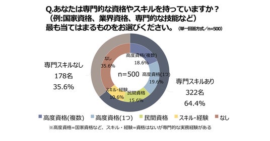 ※本調査の「専門的な資格やスキル」とは、国家資格・業界資格に加え、特定分野での実務経験や専門的な技術・知識を含む自己申告ベースの定義です。