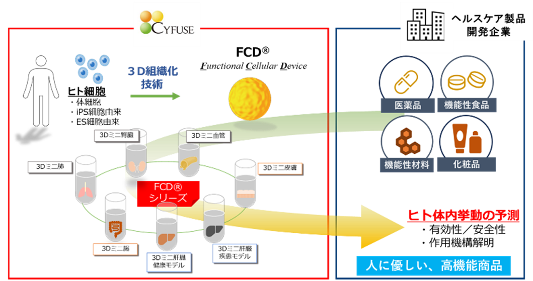 FCD製品は、安定した品質と高いユーザビリティーを特徴としており、ヘルスケア製品開発の時間・コスト削減、将来的には、現代の社会的課題である動物実験に対する代替法としての可能性を有する次世代の評価ツールとして期待されています。