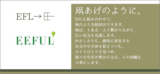新社名のロゴデザインは、EFLを組み合わせてできる「凧」のような絵図がモチーフになっています。