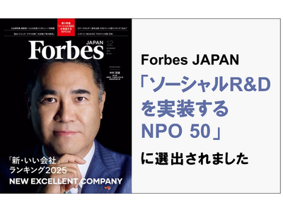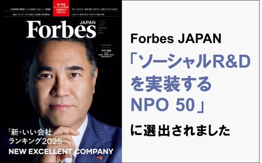 『Forbes JAPAN』の「ソーシャルR&Dを実装するNPO50」に選出されました。