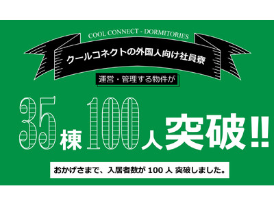 外国人向け社員寮を運営する、クールコネクト株式会社(本社:群馬県伊勢崎市、代表取締役:神戸翔太)は、自社で運営・管理する社員寮が全国で30棟、入居者100名を突破したことを報告いたします。