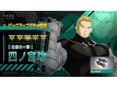 株式会社アカツキゲームス(本社:東京都品川区、代表取締役:戸塚 佑貴、株式会社アカツキ100%子会社)は、東宝株式会社(本社:東京都千代田区、代表取締役社長:松岡 宏泰)、株式会社プロダクション・アイジー(本社:東京都武蔵野市、代表取締役社長:和田 丈嗣)との共同プロジェクト『怪獣8号 THE GAME』において、新★5キャラクター[全盛の一撃]四ノ宮功を実装いたしました。