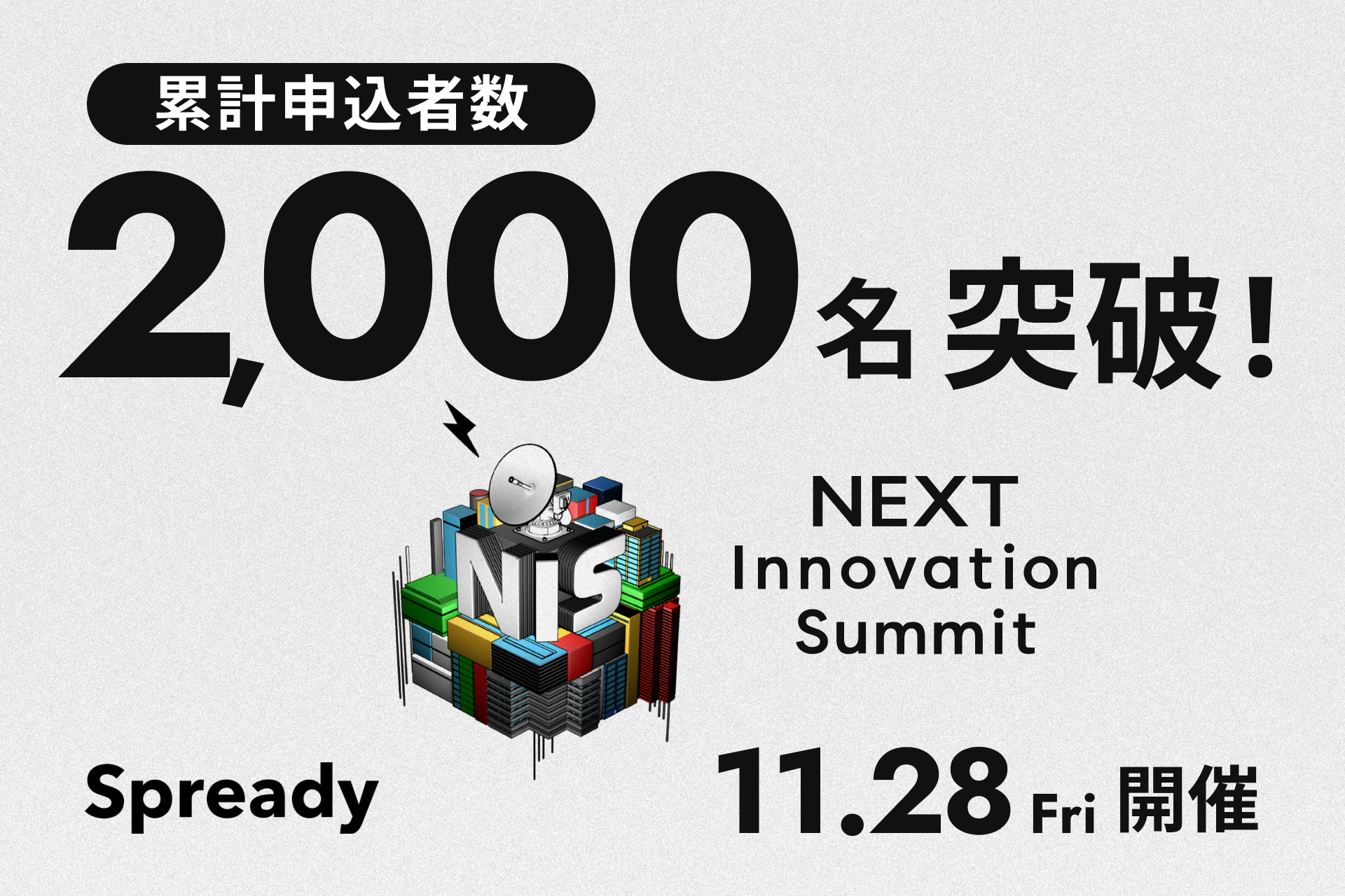 新規事業支援サービスを提供するSpready株式会社(本社:東京都渋谷区、代表取締役社長:佐古雅亮、以下「当社」)は、2025年11月28日(金)に新規事業の取り組みや知見を発信するカンファレンス「NEXT Innovation Summit 2025 in Summer 新規事業担当者のための『学び』と『出会い』があふれる1日(以下「本イベント」)」の申し込み者数が2,000名を突破したことをお知らせします。