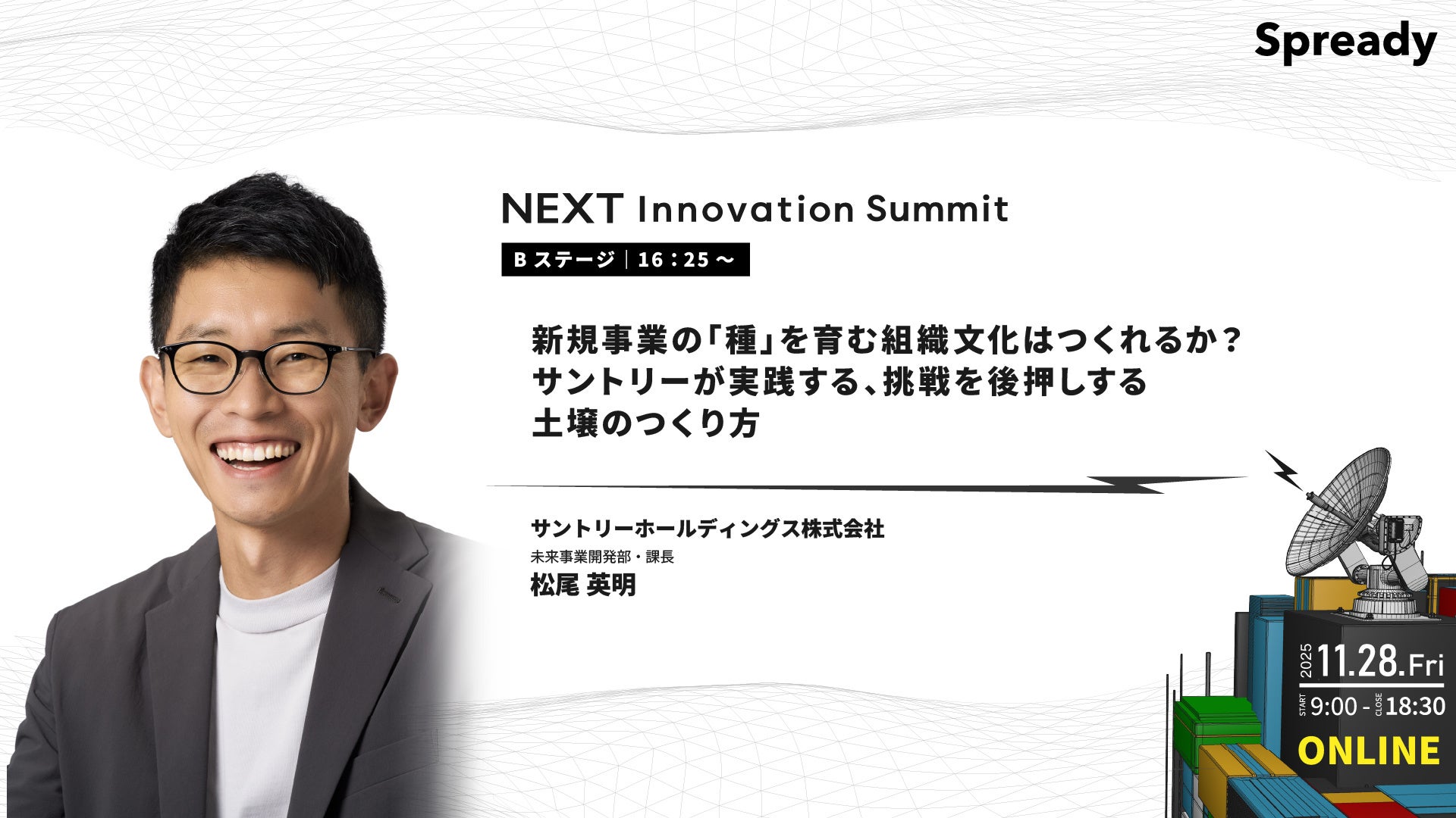 16:25~17:10「新規事業の「種」を育む組織文化はつくれるか?サントリーが実践する、挑戦を後押しする土壌のつくり方」