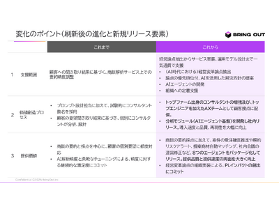 今回のブランドリニューアルを通じて、ブリングアウトは経営変革を支援するAXファームを掲げ、個別開発型の支援から、共通基盤を軸にした構造的な経営変革支援へと移行します。