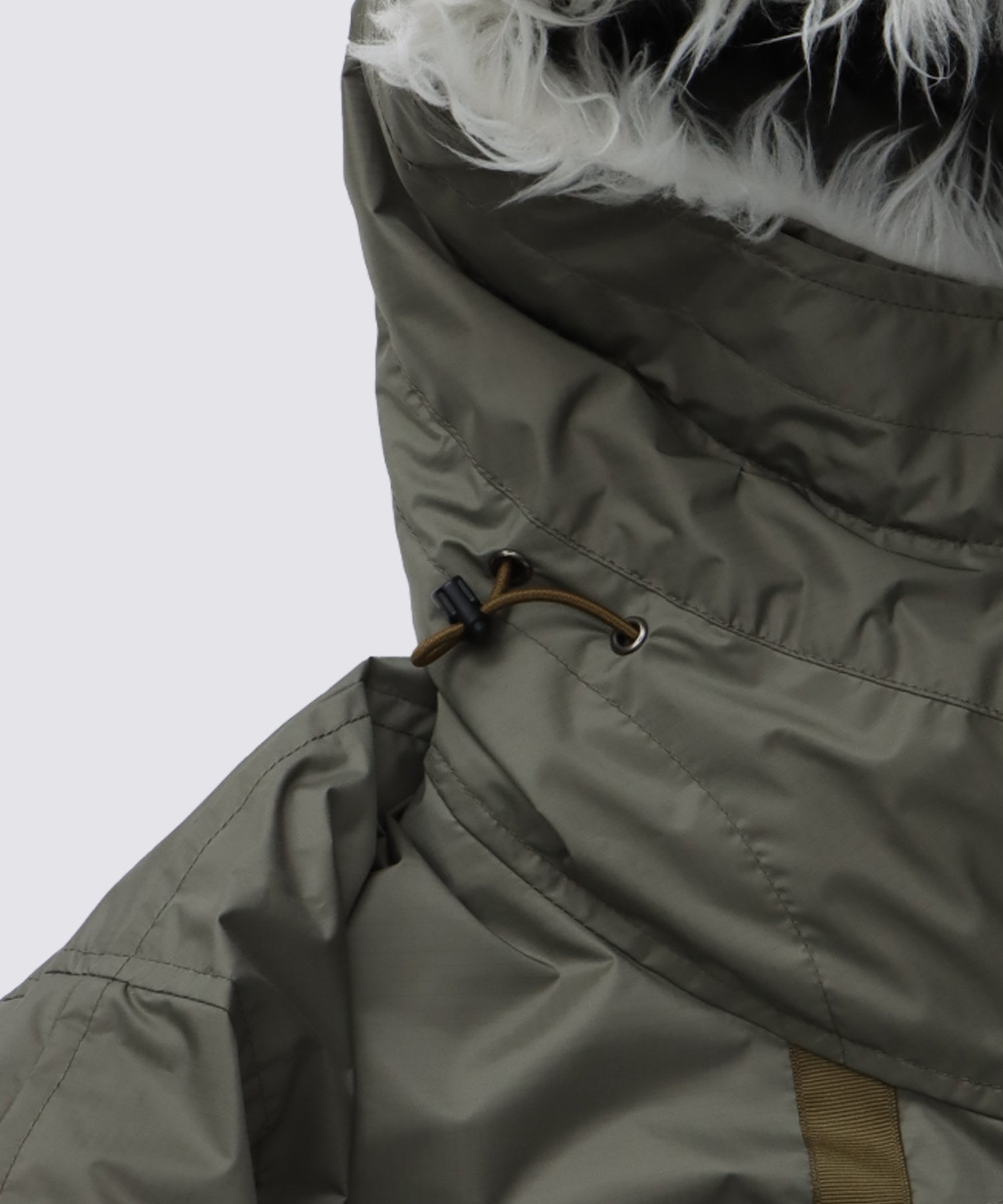 本作は、アメリカ空軍が極寒地での着用を目的に開発したN-3Bをベースに、FIDELITYのミリタリースピリットとNANGAのダウン技術を掛け合わせて開発されたコラボレーションモデルです。