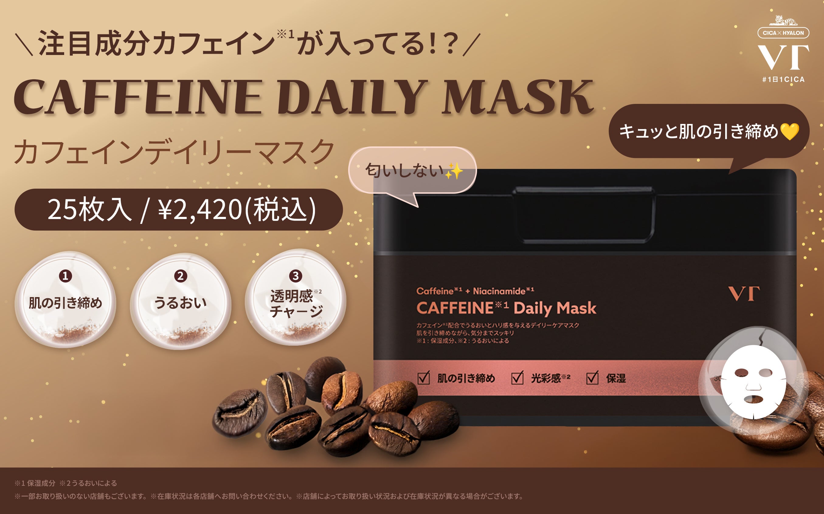 韓国発のスキンケアブランド VTは、日々の肌コンディションを整える「カフェインデイリーマスク」を2025年11月13日(木)より、全国PLAZA・MINiPLA※にて先行発売いたします。