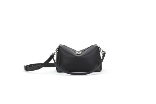 ホリデーシーズンのイブニングウェアには、スモールサイズのクラシカルなブラックレザーの「フェンディ ルイ」が、装い全体を洗練されたアクセントでより一層引き立てます。また、コージーなシアリング素材や、ラグジュアリーな光沢を放つ イール素材、さらにはベージュ、ブラウンといったタイムレスなクラシカルカラーのレザー製も引き続き展開いたします。