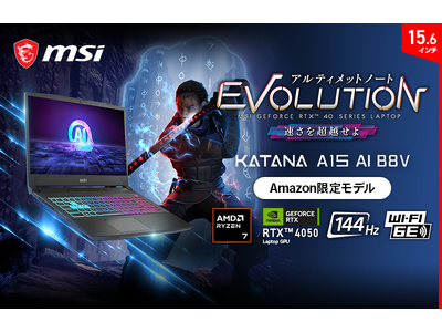 「Katana-A15-AI-B8VE-5398JP」は、様々なデバイスで採用が進められているAI機能をゲーミングノートPCへ提供し、ゲーミングノートPCに革命をもたらす「AMD Ryzen(TM) AI」に対応し、15.6インチのフルHD・144Hzディスプレイを搭載したゲーミングノートPCです。