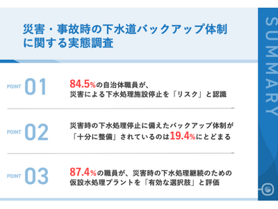 - 01|84.5%の自治体職員が、災害による下水処理施設停止を「リスク」と認識