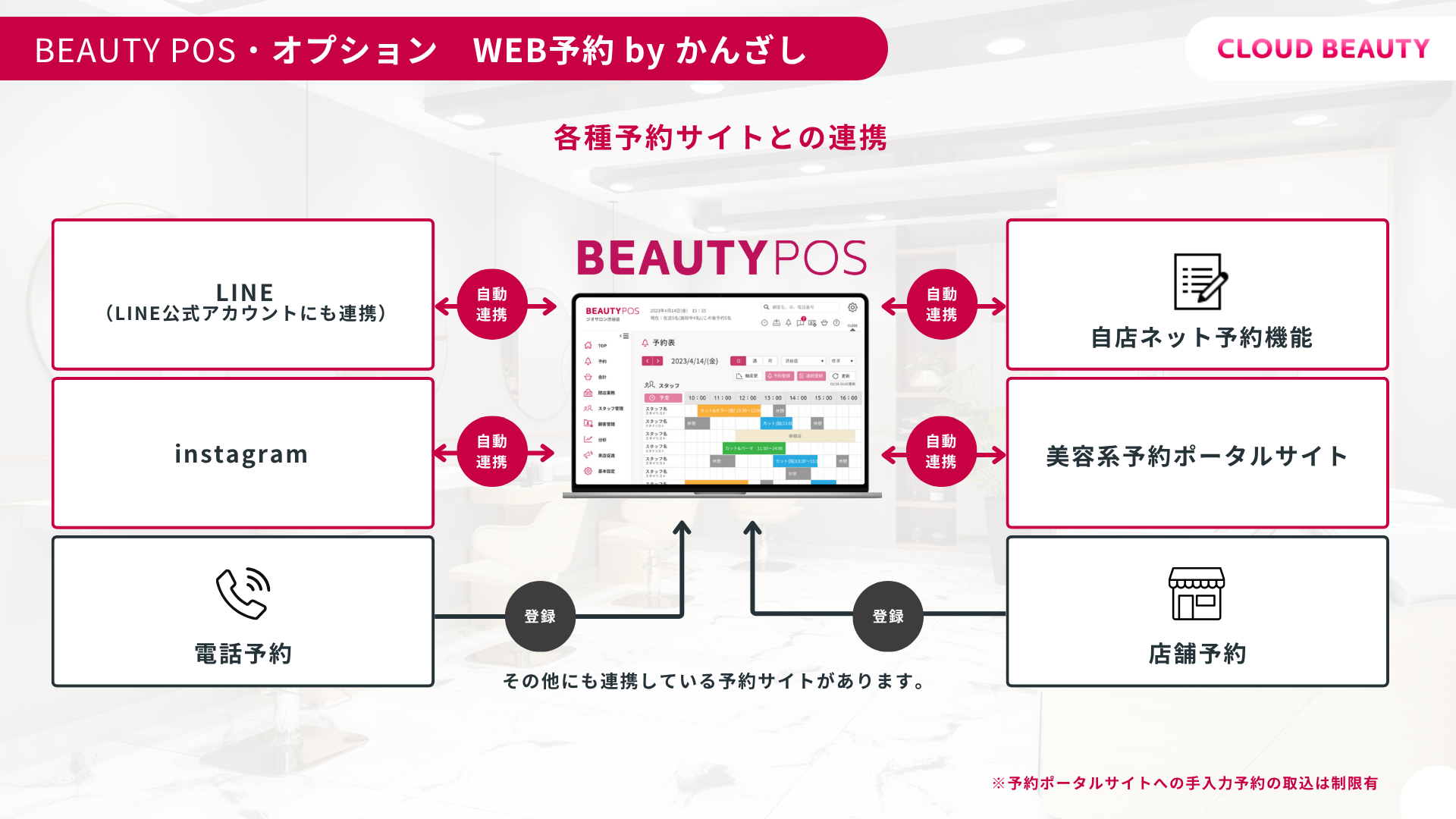 本連携により、美容室・エステ・ネイル・リラクゼーションなど、美容サロン全般において、複数の予約経路をPOS上で一元管理できるようになりました。