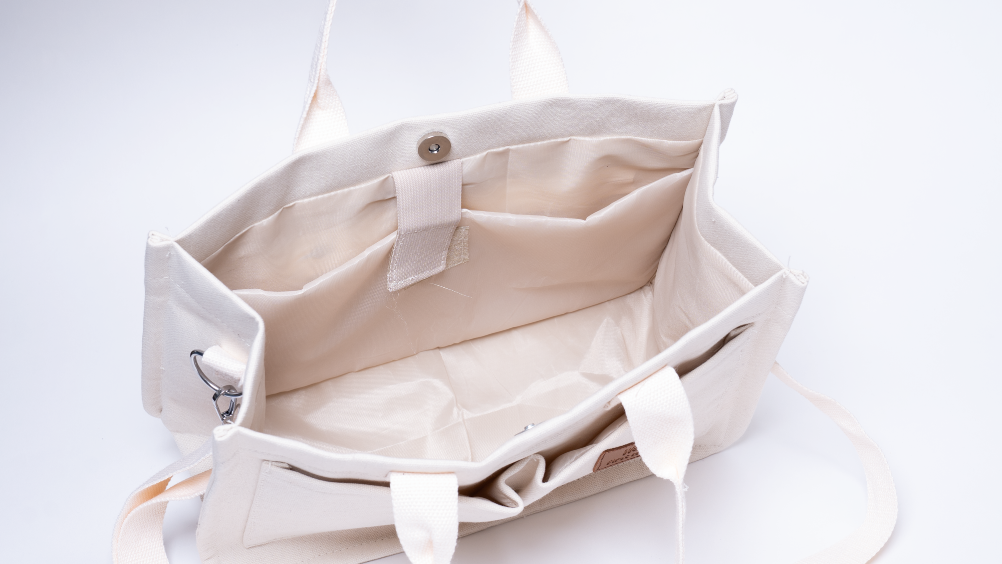 A4サイズもしっかり入るトートバッグは、用途に合わせて手持ち・肩掛けができる2Way仕様!