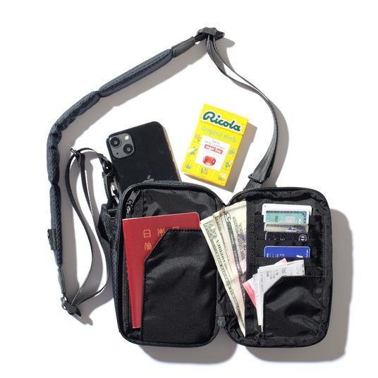 お札やカード、パスポート等を整理して収納できる財布としての機能と、スマートフォンや充電器、ハンカチなど必需品をまとめて持ち運べるミニバッグの機能を両立しました。