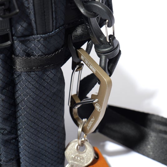 側面にはカラビナなどを取り付けられるDカンを備え、ショルダーストラップには肉厚なクッションをボンディングすることで、長時間の使用でも疲れにくいよう配慮しました。