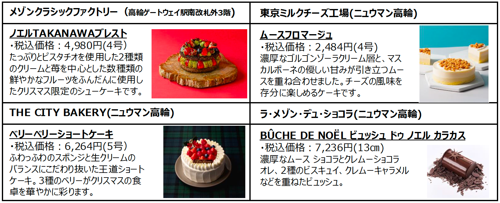 JWマリオット・ホテル東京、ニュウマン高輪、エキナカショップによるクリスマス限定メニューをご紹介します。※ご予約や商品に関するお問い合わせは各ショップまで