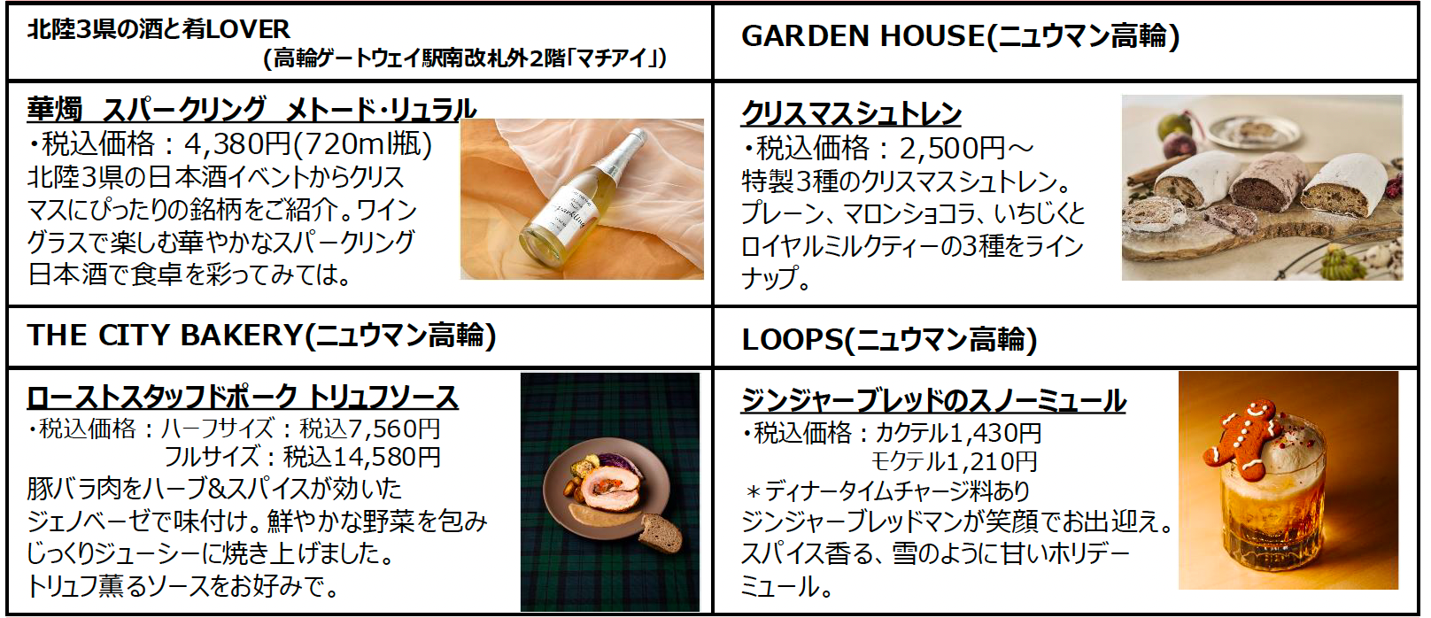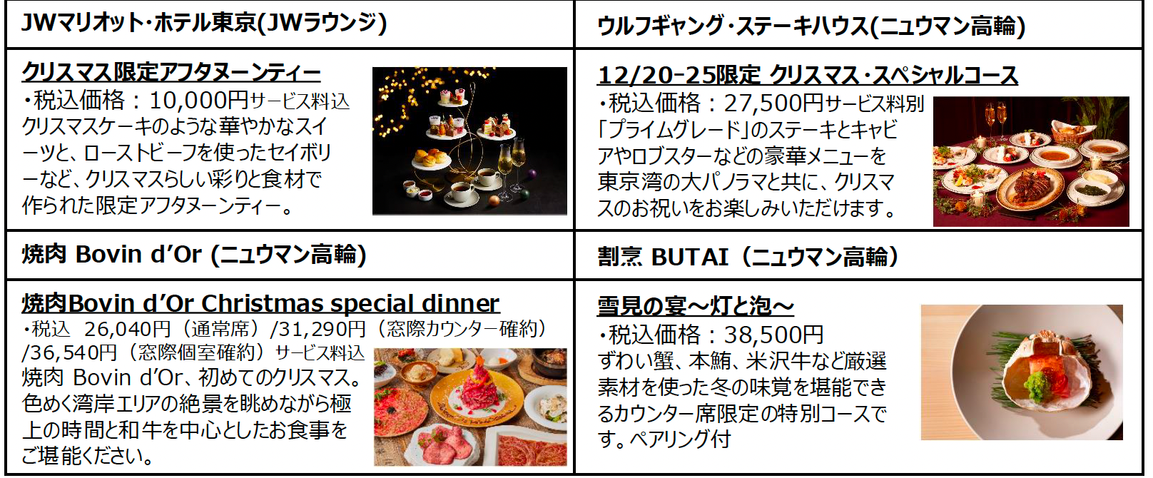 JWマリオット・ホテル東京、ニュウマン高輪、エキナカショップによるクリスマス限定メニューが登場。