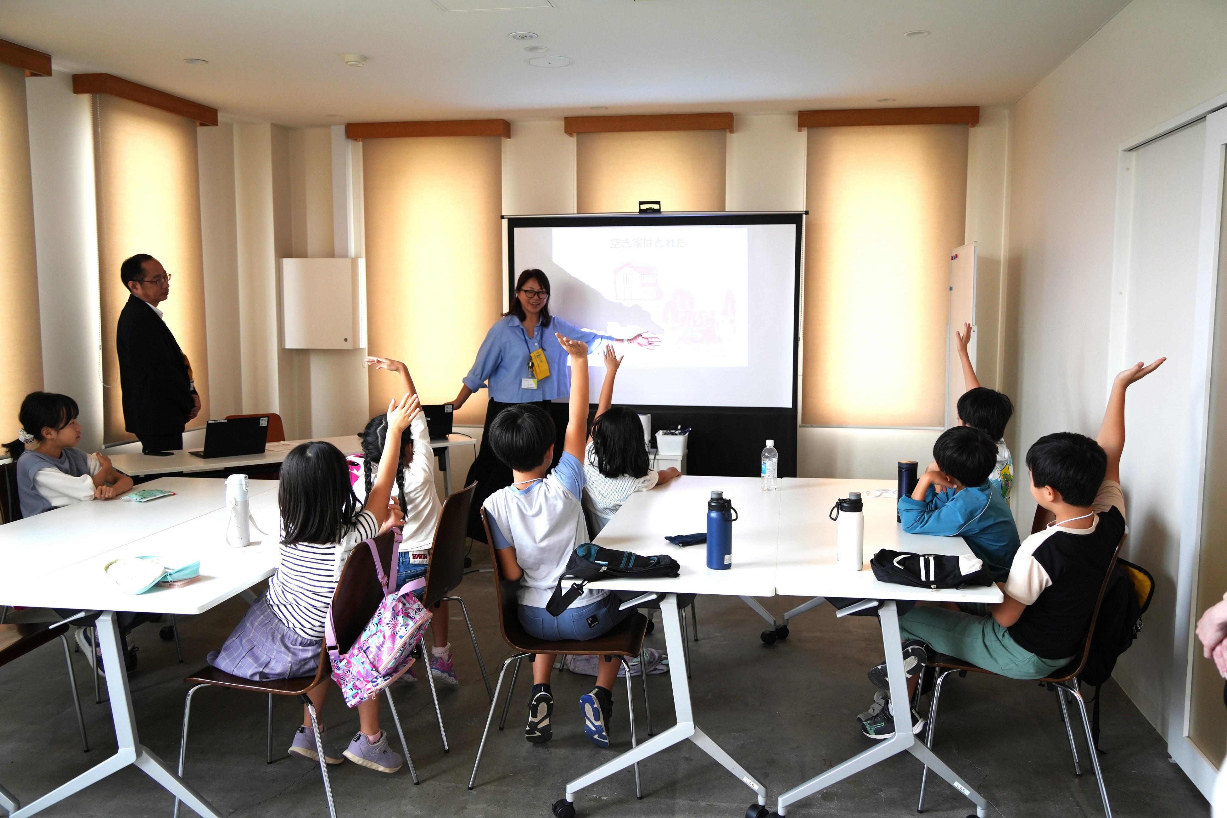 内 容:空き家の定義や社会的背景、放置による課題について、子どもたちにわかりやすく紹介しま した。クイズ形式のワークやグループディスカッションを通じて、子どもたちが自分の家族