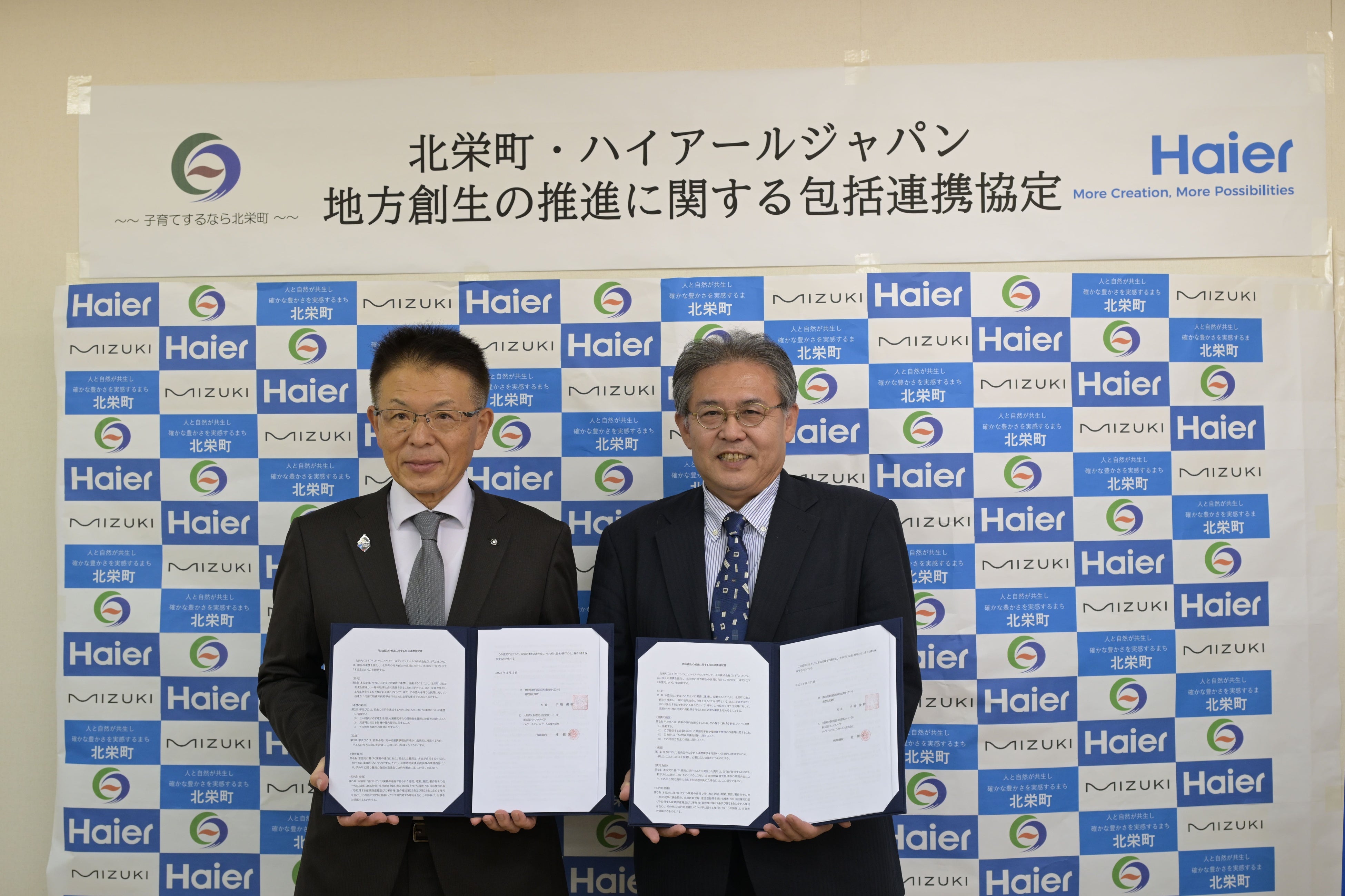 ハイアールジャパンセールス株式会社と鳥取県北栄町は、福祉・環境・防災・まちづくりなど地域が抱えている様々な課題に対し相互の連携を強化し、北栄町の地方創生を推進し、一層の地域社会の発展を図り、災害時には迅速かつ円滑に物資供給等を行うことを目的に包括連携協定を締結します。また、吸引式床拭き掃除機「MIZUKI」(JC-M1A)と、布製品水洗い掃除機「MIZUKI nu-no」の温水スチームモデル(JC-RPS1A)を寄贈し、こども園等での活用・業務の効率化や環境衛生管理の改善を図れるようにすることで、子どもたちが衛生的な環境で過ごせるだけでなく、保育士の労務改善を図り、北栄町の子育て支援を推進できるようにしていきます。