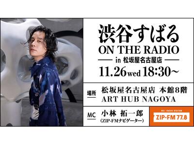 11/26(水)18時30分~ 松坂屋名古屋店本館8階 ART HUB NAGOYAで、ZIP-FM「渋谷すばる ON THE RADIO in 松坂屋名古屋店」開催が決定しました!