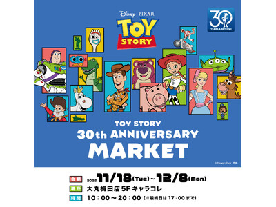 『トイ・ストーリー』の期間限定ポップアップストア「TOY STORY 30th ANNIVERSARY MARKET」を大丸梅田店5F「キャラコレ」にて開催いたします。本イベントに合わせて、トイ・ストーリー30周年のロゴを使用したアイテムなどのイベント限定商品も販売いたします。
