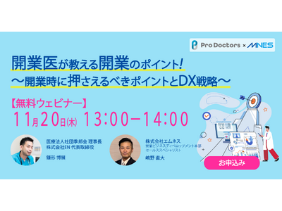 クラウド型医療情報管理共有システム「LOOKREC (※1)」を提供する株式会社エムネス(所在地:広島県広島市、代表取締役社長:阿部 伸一)は、「開業医が教える開業のポイント!~開業時に押さえるべきポイントとDX戦略~」セミナーを、2025年11月20日(木)に開催いたします。