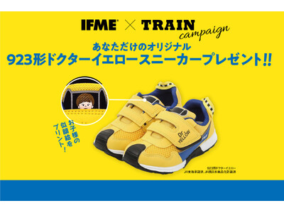 様々な新幹線・電車とのコラボレーションシューズを展開する、『IFME×TRAINシリーズ』。IFMEの機能性はそのままに、車両の特徴を落とし込んだデザインで、2020年の発売から、多くのお子様たちに愛用されてきました。この度、ファンの子どもたちへの感謝を込めて、シリーズの中でも人気の高い「923形ドクターイエロースニーカー」に、似顔絵イラストが入った世界に一つだけのオリジナルスニーカーの当たるキャンペーンを開催いたします。