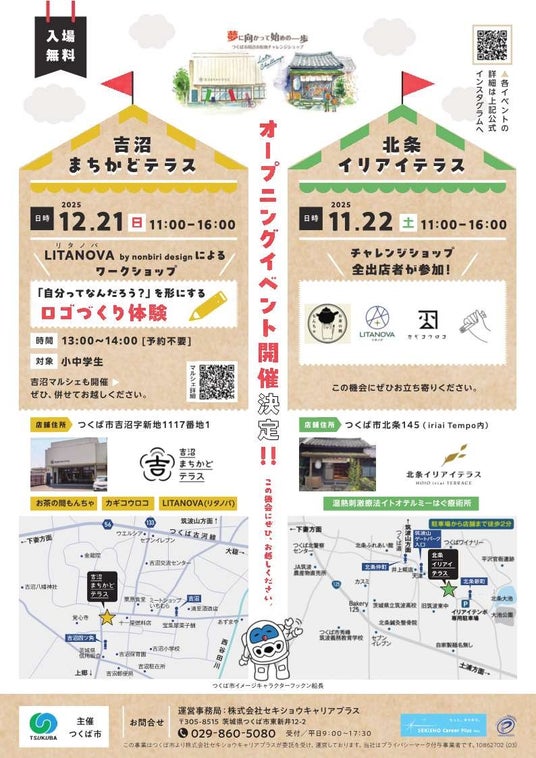 つくば市の空き店舗等を活用した周辺市街地チャレンジショップに今年の新たな店舗がオープンしました。【11/22(土)・12/21(日)】にはイベントを開催します!