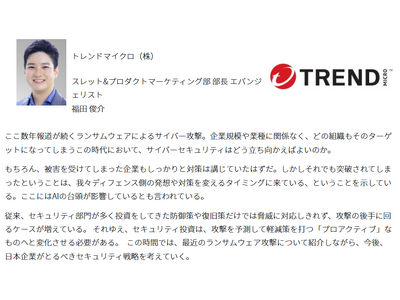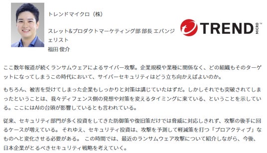 【緊急開催】法人組織がいま改めて考え直したい AIを活用したランサムウェア対策を含むサイバーセキュリティの新常識