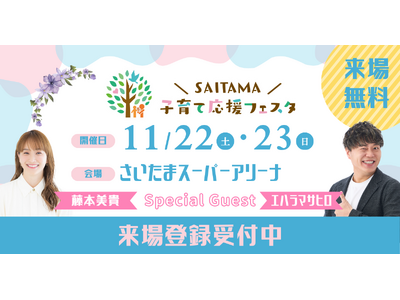 冠婚・葬祭・互助会を柱とした総合結婚式場・葬斎センター・多目的ホールを展開するアルファクラブ武蔵野株式会社(本社:埼玉県さいたま市大宮区、代表取締役社長 和田浩明、以下 当社)は、地域のマタニティ・子育て世帯を支援し、お子様の健やかな成長と保護者の交流を推進することを目的とした体験型イベント『SAITAMA子育て応援フェスタ2025』(以下 本フェスタ)を、2025年11月22日(土)・23日(日・祝)の2日間、さいたまスーパーアリーナで開催いたします。1日目のステージゲストにはタレントの藤本美貴さん、2日目にはお笑い芸人のエハラマサヒロさんをお招きし、トークショーやフォトコンテストを開催。さらに、親子で楽しめるワークショップや景品が当たる抽選会など楽しいコンテンツが盛りだくさん!一日中満喫できるこのイベントが、なんと入場無料!皆様のご来場をお待ちしております。