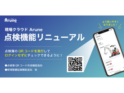 「現場クラウド Arune」に新機能「点検簿QRコード作成機能」、「修理整備記録機能」が追加されたことをお知らせいたします。点検・整備・管理業務をさらに効率的に行えるようになりました。