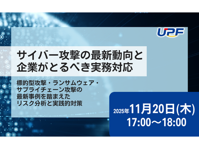 リスクマネジメント分野のコンサルティングサービスを提供する株式会社UPF(本社:東京都中央区、代表取締役:仲手川 啓、以下当社)は、2025年11月20日(木)17:00より、サイバー攻撃の最新動向と企業がとるべき実務対応をテーマとしたオンラインセミナーを開催いたします。