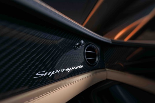 ウエストレールとファシアパネルには軽量かつ高光沢のカーボンファイバー・ベニアが標準装備され、レザーとダイナミカを組み合わせた仕上げとなっています。ダイナミカはシートバックおよび座面の中央部、ドア中央パネル、ヘッドライナーに使用されています。スーパースポーツの刺繍とバッジがキャビンを完成させ、センターコンソールには個別のシリアルナンバー入りバッジが配置されます。