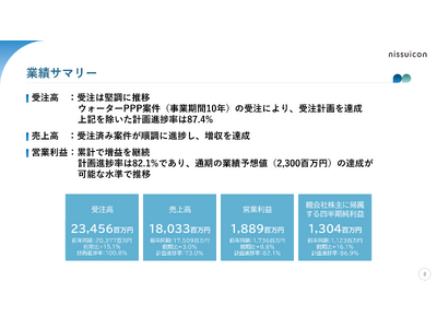 株式会社日水コン(本社:東京都新宿区、代表取締役社長:中西 新二)は、2025年12月期 第3四半期決算を発表しましたので、お知らせします。