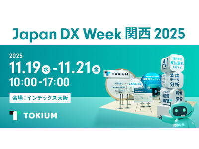 経理AIエージェントを提供する株式会社TOKIUM(本社:東京都中央区、代表取締役:黒崎 賢一、以下「TOKIUM」)は、2025年11月19日から11月21日までの3日間、インテックス大阪で開催されるJapan DX Week 関西 2025 内の「社内業務DX EXPO」に出展いたします。