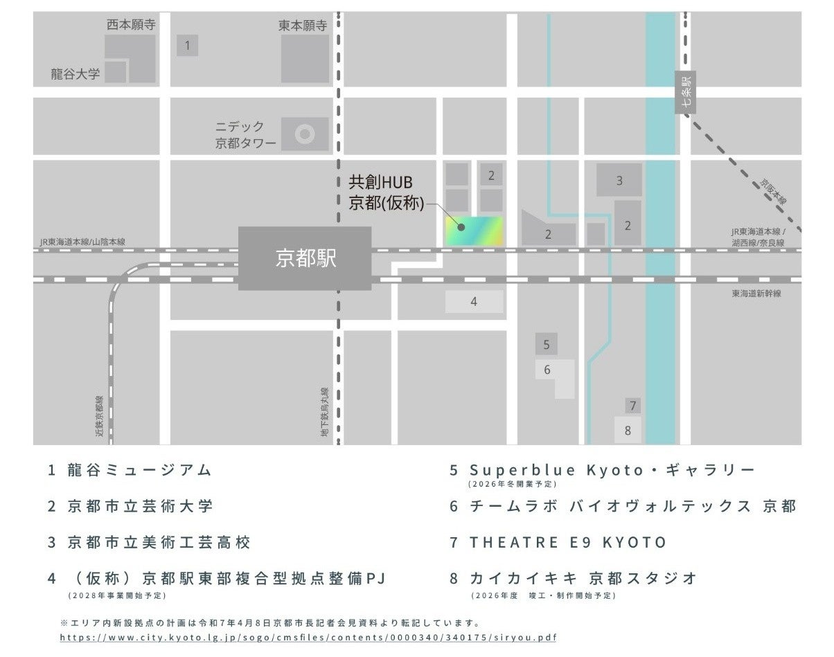 また、本拠点が立地する京都駅周辺エリアでは、2023年京都市立芸術大学の移転に始まり、複数の文化・芸術拠点が次々と新設予定であり、本拠点においても文化・芸術の新たな発信に寄与する取組みを進めていきます。