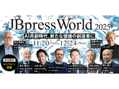 株式会社日本ビジネスプレス(本社:東京都港区、代表取締役社長:菅原聡)が運営する企業変革専門メディア『Japan Innovation Review』/総合経済メディア『JBpress』は、変化に立ち向かい挑戦を続ける変革リーダーのための複合オンラインイベント「JBpress World 2025」を2025年11月20日(木)~12月24日(水)の約1か月にわたり開催いたします。