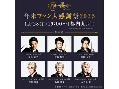 TBS赤坂ACTシアターにて絶賛上演中の舞台『ハリー・ポッターと呪いの子』。東京公演はロングラン4年目となり、総観客数130万人を突破。これまでご観劇いただいたファンの皆さまに感謝の気持ちを込めて、舞台『ハリー・ポッターと呪いの子』年末ファン大感謝祭2025の開催が決定!2026年4月公演までのチケット絶賛販売中。