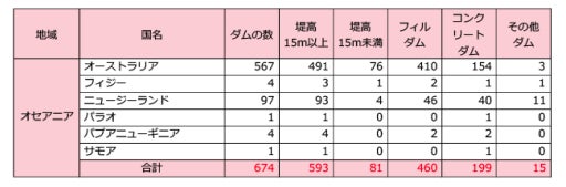 【表6:世界のダムの数オセアニア -( 参 考: World register of dams、 国際大ダム会議ウェブサイト、2020年4月をもとに著者が集計)】