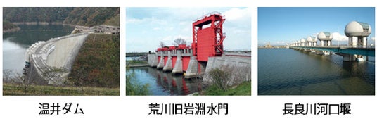 【図2:ダム・堰・水門の違い、温井ダム(著者撮影)、荒川旧岩淵水門(引用:河川ネット)、長良川河口堰(引用:一般財団法人 日本ダム協会)】