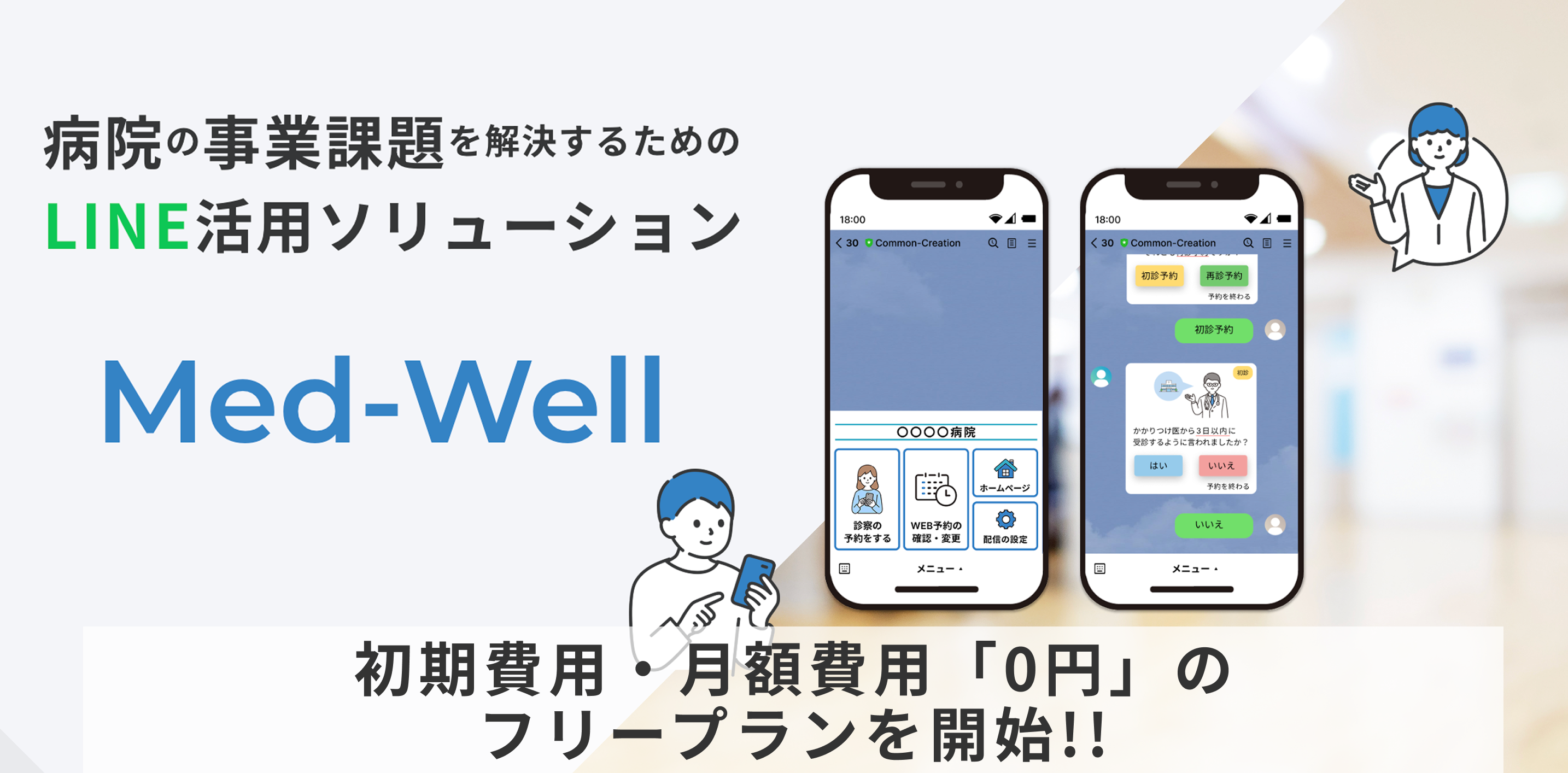 コモン・クリエーション株式会社(本社:福岡県福岡市、代表取締役:牟田和貴)は、病院向けLINE活用プラットフォーム「Med-Well(メドウェル)」において、病院・医療機関向けに