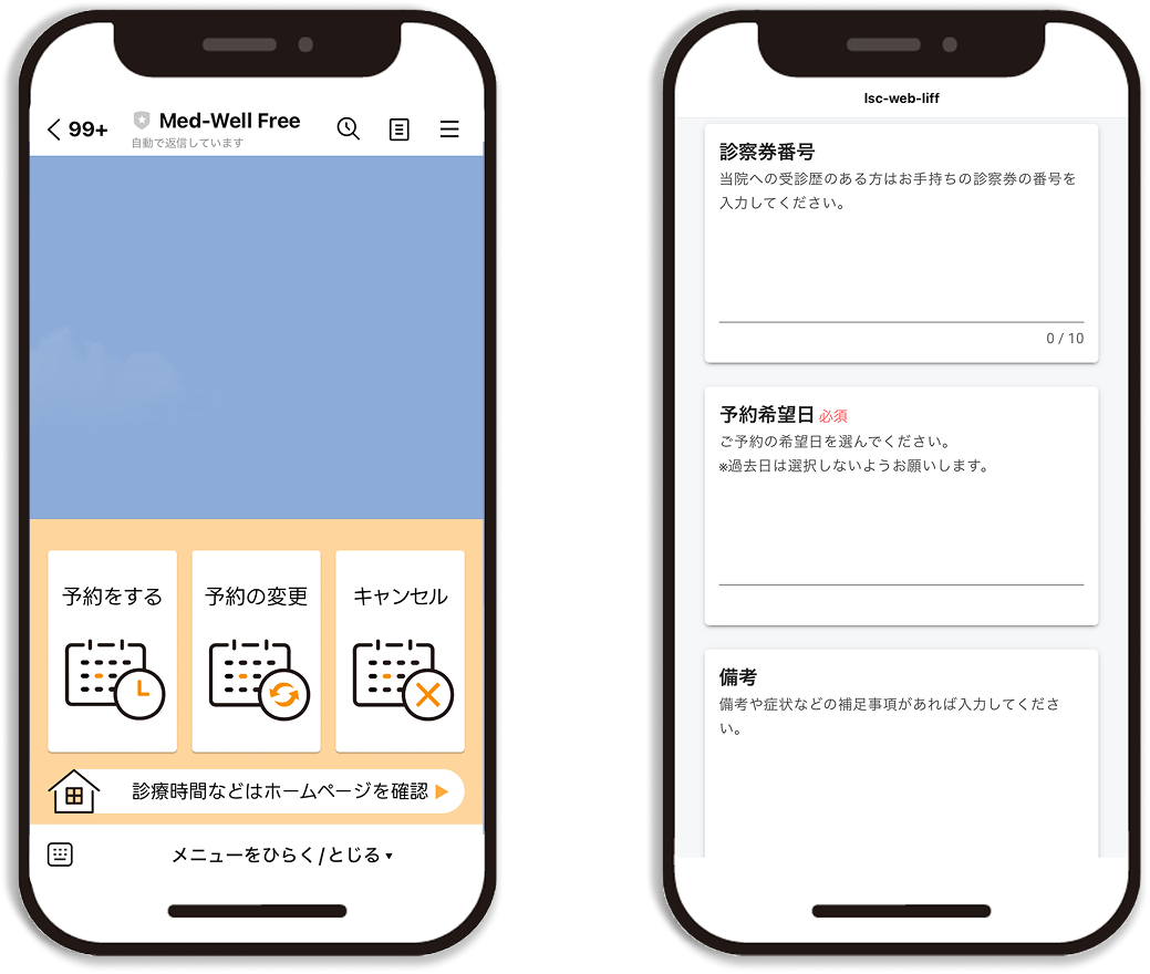 - 予約機能(診療予約・問診予約・ベッド予約など)