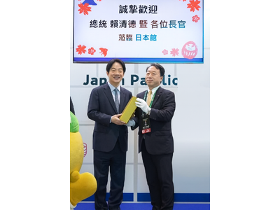 開幕初日の11/7(金)には、頼清徳総統に日本ゾーンをご訪問いただき、檜垣常務理事がお出迎え、記念品を贈呈いたしました。