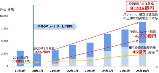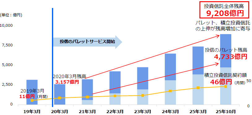 福岡銀行の投資信託全体の残高増加に大きく寄与しました。その結果、2025年9月時点で