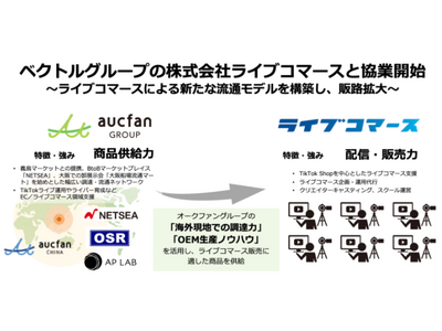 株式会社ベクトル(本社:東京都港区、代表取締役会長兼社長CEO:西江肇司、東証プライム:6058)傘下でTikTokコマースに特化した子会社となる株式会社ライブコマース(本社:東京都港区、代表:森勇気、以下ライブコマース社)は、株式会社オークファングループ(本社:東京都品川区、代表取締役:武永修一、以下オークファングループ)と、協業を開始いたします。