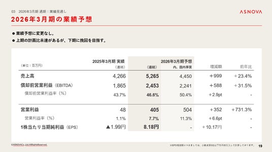 くさび式足場のレンタル・販売を提供する株式会社 ASNOVA(本社所在地:愛知県名古屋市、代表取締役社長 上田桂司、以下「当社」)は2025年11月14日(金)、2026年3月期 第2四半期決算を発表いたしました。