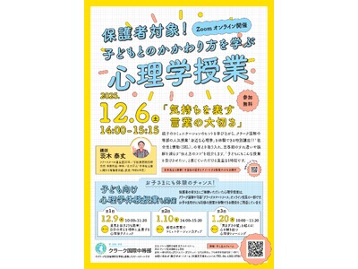 クラーク国際中等部(創志学園グループが運営するクラーク記念国際高等学校と教育連携するフリースクール)は、全国の思春期の子どもを持つ保護者に向けて「子どもとのかかわり方を学ぶ心理学授業」(2025年12月6日(土)14:00~15:15)や、子ども向け体験イベント授業を計4回オンラインで実施いたします。