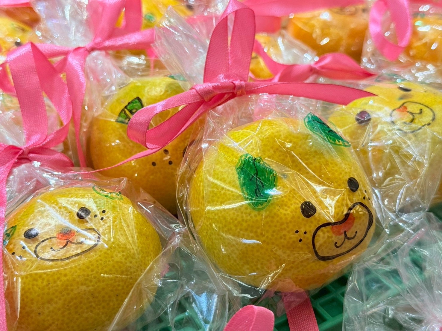 生徒たちが一つひとつ心を込めて描いた“みきゃん”のイラストが入った袋で包まれた「手描きみきゃんのみかん」。